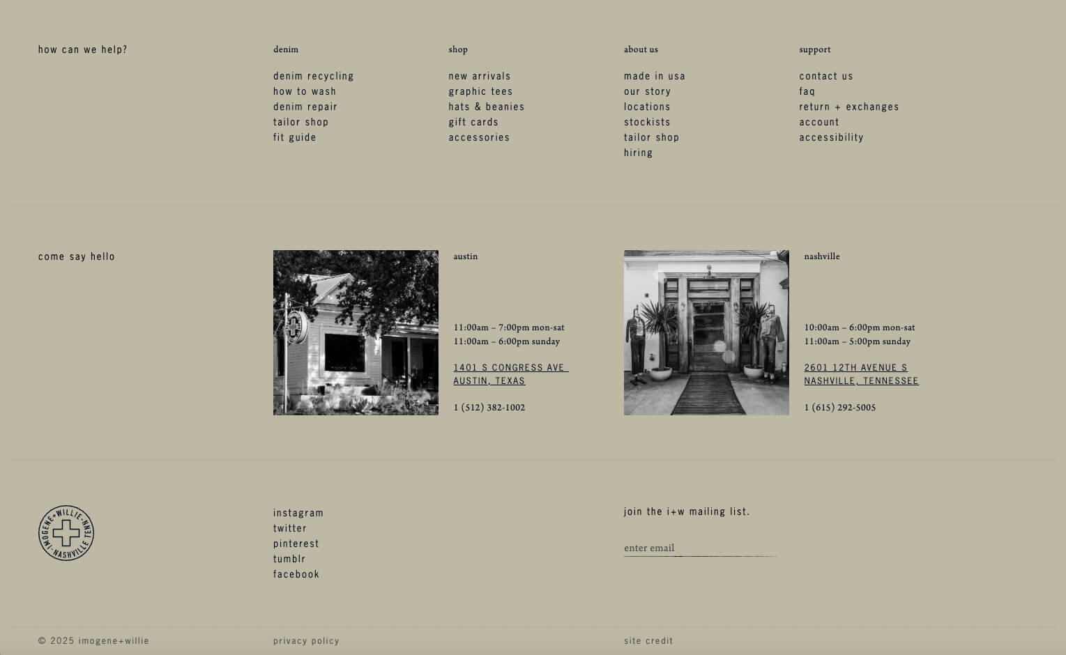imogene+willie is an apparel company based out of Nashville. I partnered with Bondfire Inc. to